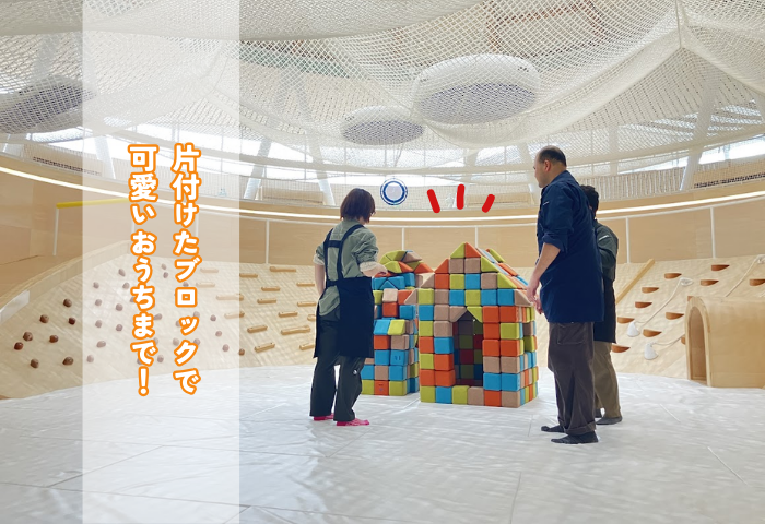 作業の最後には、翌日のお出迎え用にクリエイティブキューブでおうちをつくっていただきました。