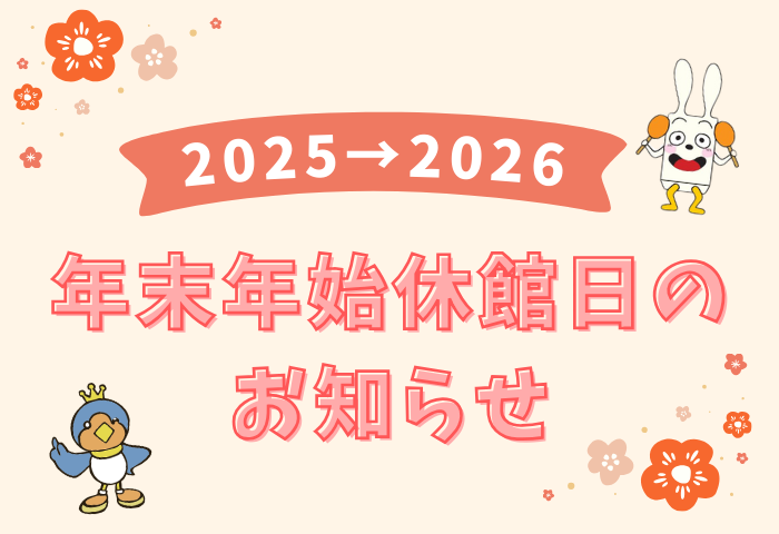 また、1月4日(日)は通常どおりの9時から17時の開館ですが、1月5日(月)は休館日となりますのでご注意ください!
